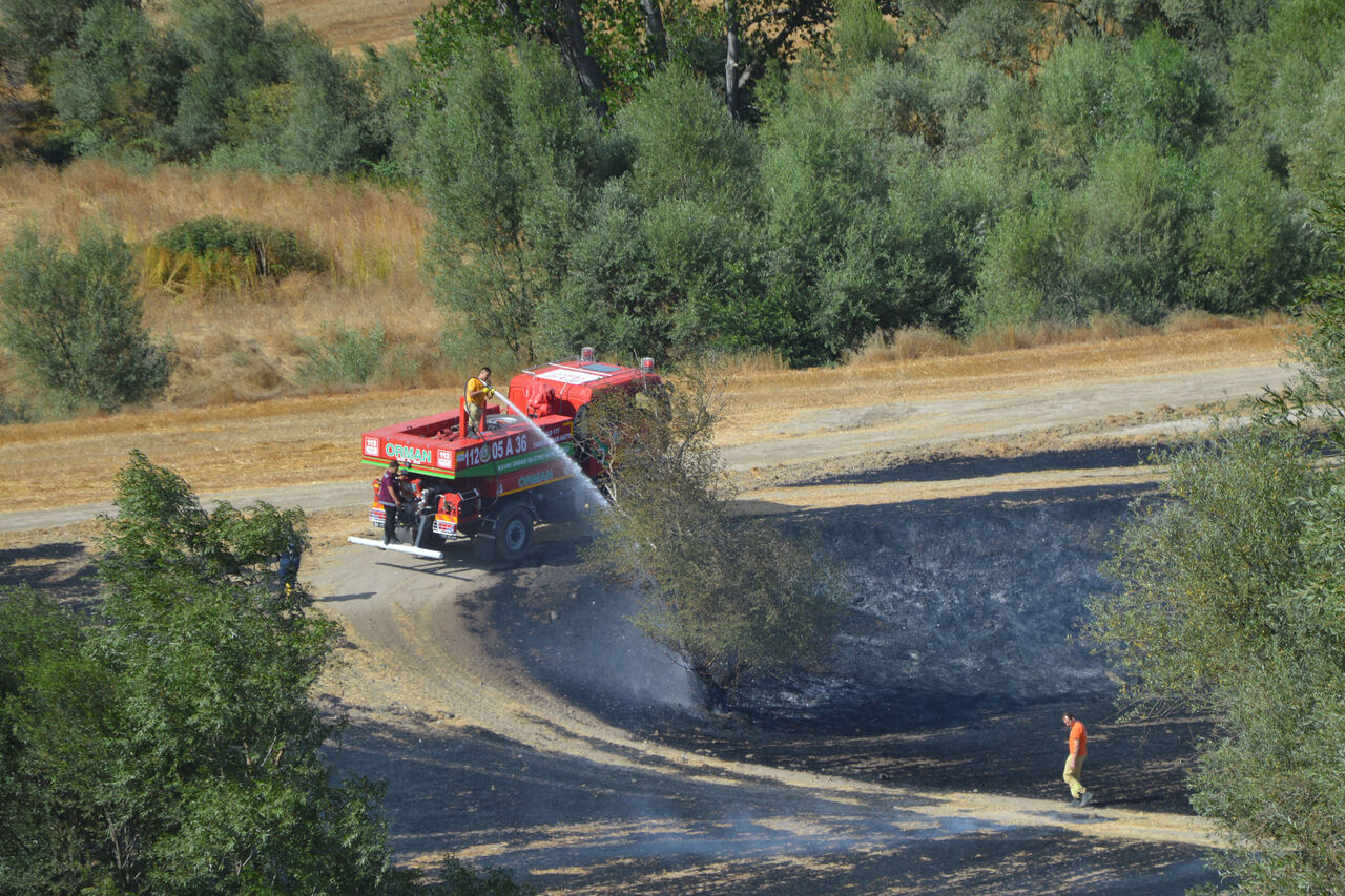 Çay ve Yenimescit mahallesi kırsalında, biçilmiş tarım arazisindeki anızlarda yangın çıktı.