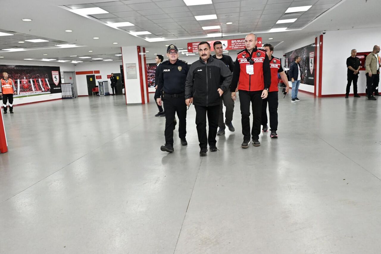 Ayrıca, seyirci giriş-çıkış noktaları, bilet kontrol alanları ve otopark bölgelerinde alınan tedbirleri denetleyerek detaylı bilgi aldı.