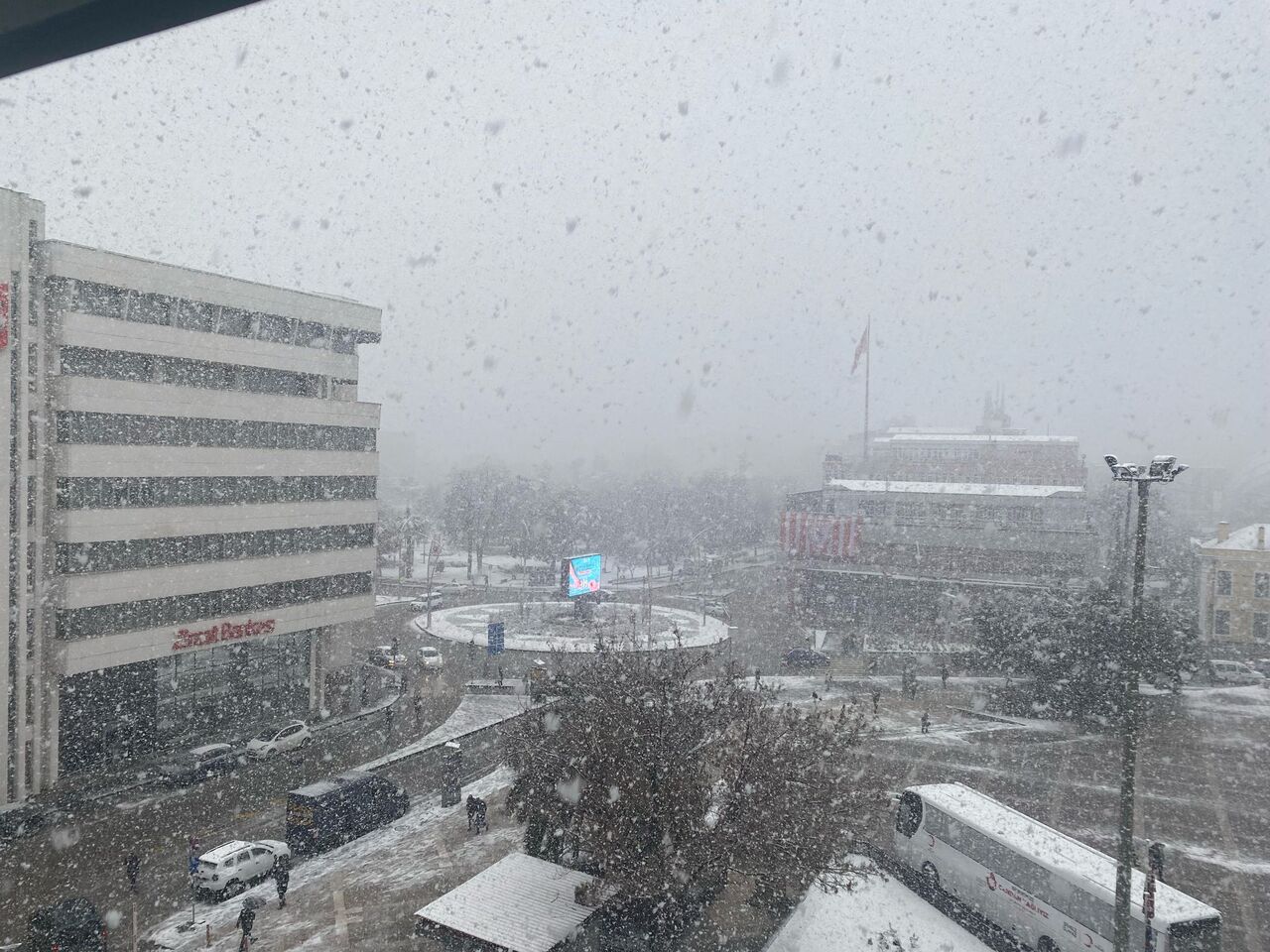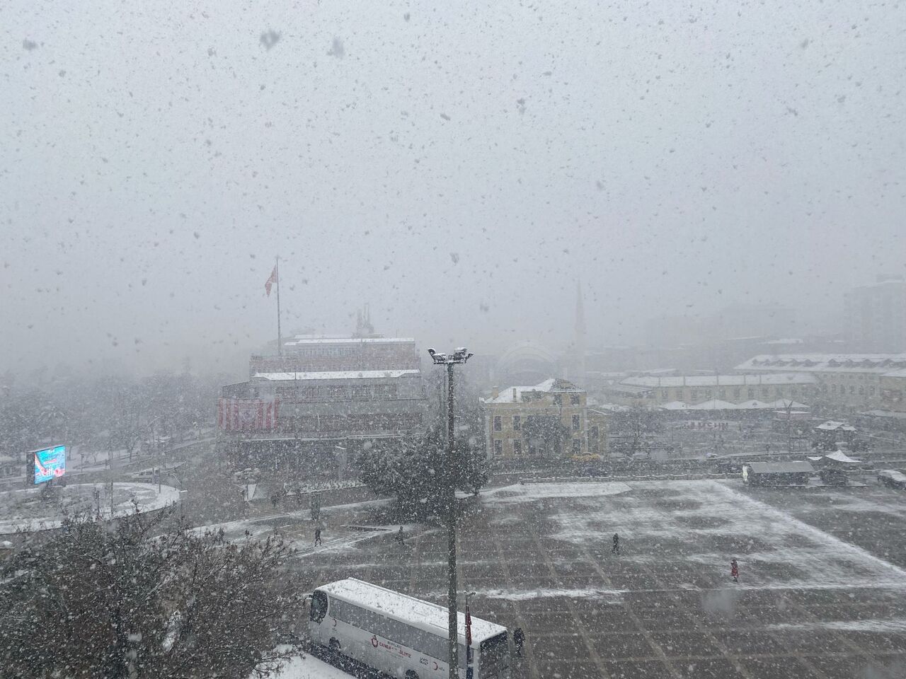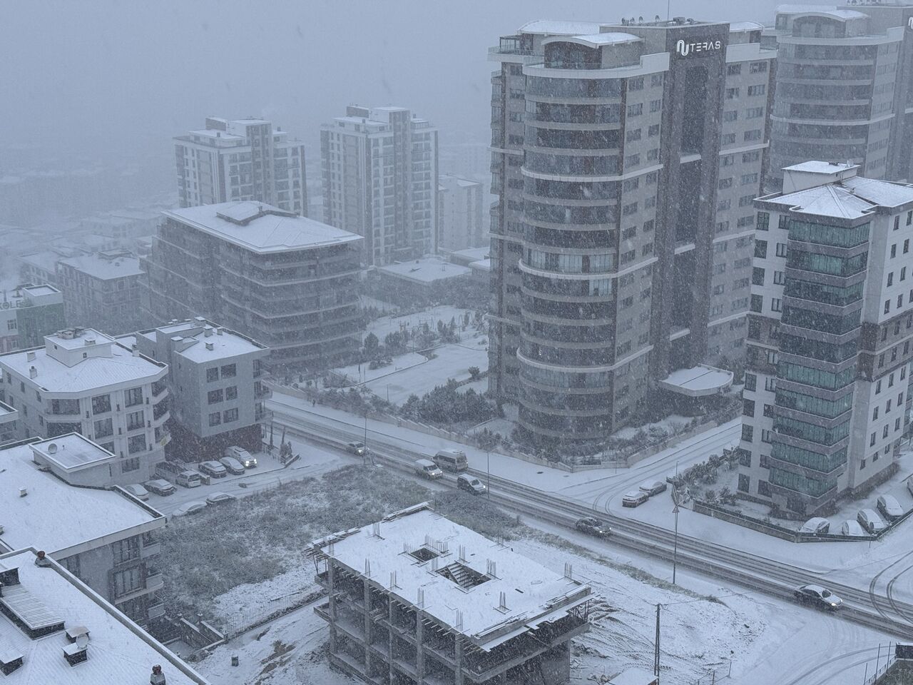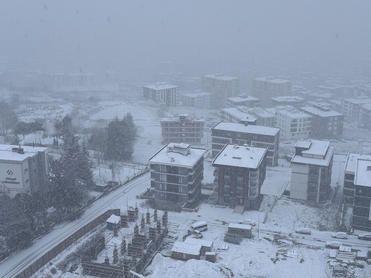 ÇATI VE ARAÇLAR BEYAZ ÖRTÜYLE KAPLANDI