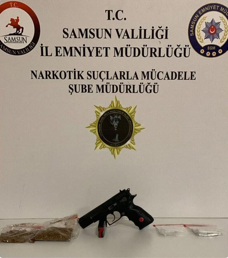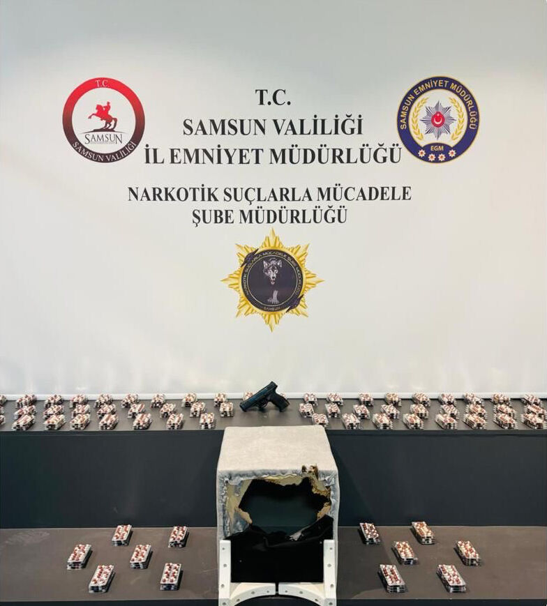 İlkadım ilçesinde belirlenen adreslerde arama yapan ekipler, 3 bin 920 sentetik ecza hapı, 25,65 gram sentetik uyuşturucu ile 2 ruhsatsız tabanca ele geçirdi.