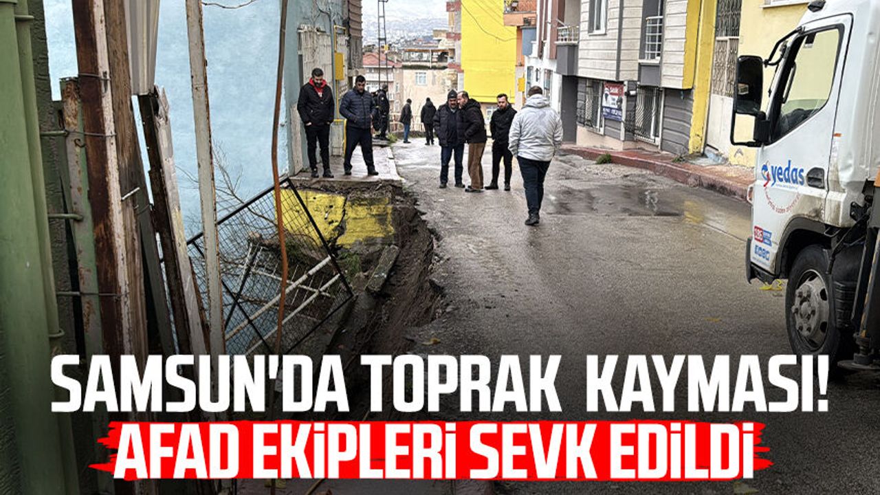 Samsun'un İlkadım ilçesi Cedit Mahallesi Uygur Türkleri Sokak'ta yağışlardan dolayı iki apartman arasında bulunan boş arazide toprak kaydı.