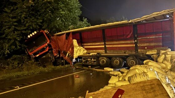 Samsun'dan Kavak istikametine seyreden Özbekistan uyruklu Shermat Norov idaresindeki tır, Yosunlu mevkisini geçtikten sonra Çakallı girişine yakın noktada kontrolden çıkarak refüjdeki bariyerlere çarptı.
