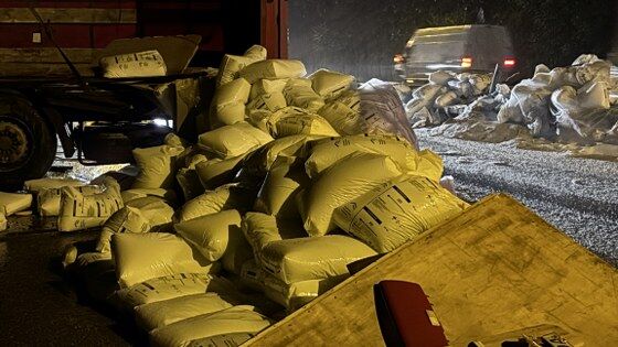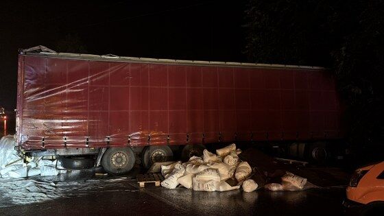Tırın dorsesinden yola savrulan yük nedeniyle Samsun Ankara kara yolunun Ankara istikametinde 2 şerit ulaşıma kapandı.