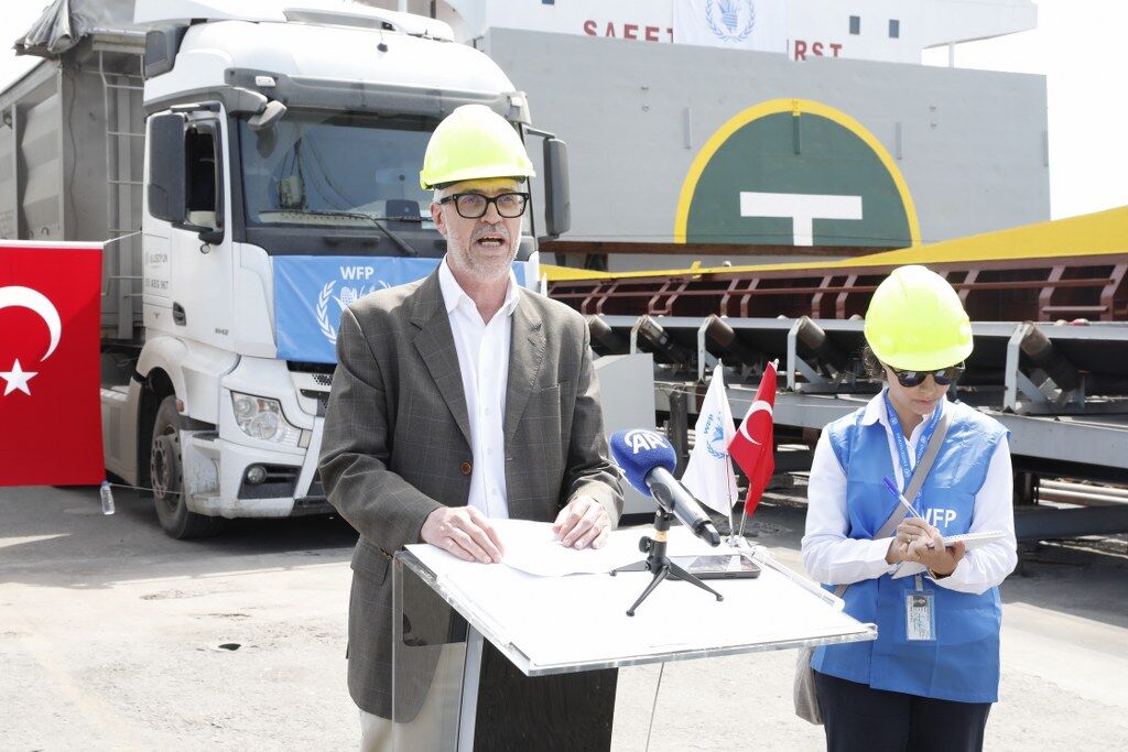 "Son 5 yılda WFP Türkiye'den 1,1 milyar dolar değerinde gıda satın almıştır ve bu Türk gıdası Türkiye içinde dağıtılmamıştır bizim küresel operasyonlarımızda insani yardım olarak dağıtılmıştır. Şu an bu gemiden buraya transfer edilen 20 bin ton buğdayın 5 bin tonu Suriye'deki insani yardım operasyonlarında kullanılmak üzere ayırılmış bulunmaktadır. Bizim Türkiye ile olan işbirliğimiz aslında bir sektöre yönelik. Burada bu operasyonumuz devam ederken ülke ofisi olarak da Türkiye'de mültecilere yönelik yardımlarımız ve ülke nüfusuna katkı sağlayan diğer kalkınma yardımlarımız da devam etmektedir. Ne yazık ki şu anda oldukça kırılımlı zamanlardan geçiyoruz. Gazze'de olanları Sudan'da, Yemen'de olanlara hep beraber tanıklık ediyoruz. Dolayısıyla bu aslında WFP'nin misyonunun Türkiye'nin çok daha ötesinde olduğunu bize göstermektedir. Bu fırsattan istifade küresel bir dayanışma çağrısında bulunmak istiyoruz. Türkiye kendi bölgesinde barış sağlayıcı olarak bir lider görev üstlenmektedir. Ancak Türkiye bunu tek başına gerçekleştiremez. Karadeniz Tahıl Koridoru Girişimi ilk başlatıldığında çok fazla donör ülke vardı. Yine bu sayıda donör ülkenin elini taşın altına koymasına ihtiyacımız var. Çünkü insani yardım bekleyen dünyanın böyle bir çağrısı bir dayanışmaya daveti söz konusu."