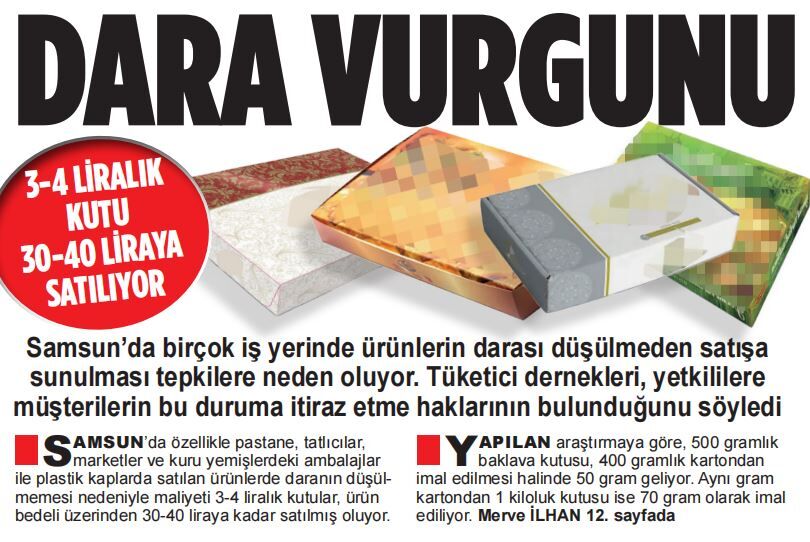 Samsun Medya Grubu’nun gündeme taşıdığı ve Yayın Kurulu Başkanı Necdet Uzun’un köşe yazısında ele aldığı konuyla ilgili özellikle pastane, tatlıcı, market ve kuruyemiş sektörlerinde ürünlerin kalın ambalajlarda tartılarak “dara” düşülmeden satılması, vatandaşlar arasında tepkilere neden olmuştu. Yapılan araştırmalarda, 3–4 lira maliyetli kutuların ürünle birlikte tartılması sonucu tüketicilerin 30–40 liraya varan fazla ücret ödemek zorunda kaldığı belirlenmişti. Bazı işletmelerin bu konuda titiz davrandığı, ancak bazılarının ambalaj ağırlığını ürün fiyatına yansıtarak haksız kazanç sağladığı ifade edilmişti.