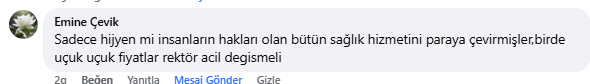 “Her şeyi özel yaptılar, paralı oldu her şey” diyen Orhan Kılıç, hastane içinde özel muamelelerin olağanlaştığını savunuyor. Emine Çevik ise “Bütün sağlık hizmetini paraya çevirmişler, rektör acil değişmeli” diyerek tepki gösteriyor.