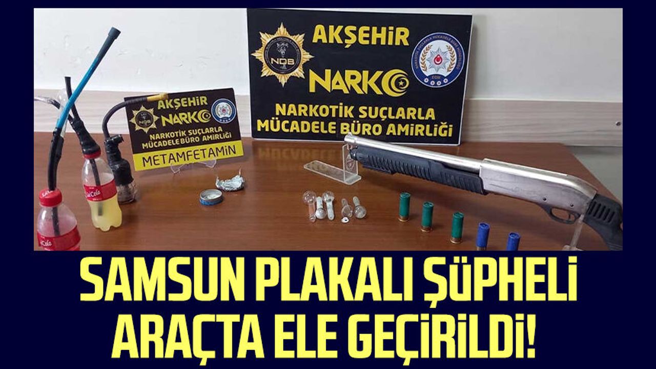 Araçta bulunan H.H.A. isimli şüpheli şahıs gözaltına alınırken, araç da İlçe Emniyet Müdürlüğü bahçesine getirildi. Narkotik ekibi Akşehir Cumhuriyet Başsavcılığından alınan arama kararı ile araçta ve şüphelinin üzerinde arama yaptı. Yapılan aramada 2 gram metamfetamin uyuşturucu madde ile 8 adet uyuşturucu kullanma aparatı bong, 1 adet av tüfeği ve 5 adet fişek ele geçirildi. Gözaltına alınan H.H.A. isimli şüpheli hakkında “Uyuşturucu Madde Bulundurmak ve Kullanmak, 6136 Sayılı Kanuna Muhalefet suçlarından işlem yapıldı.