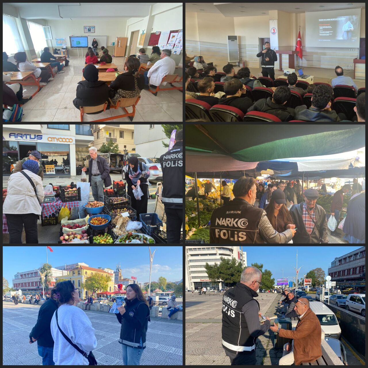 Atakum’daki 19 Mayıs Üniversitesi’nde bin 60 üniversite öğrencisine "NARKO-GENÇLİK" eğitimi verilirken, Canik Aile Destek Merkezi, İlkadım Anadolu İlkokulu ve Çarşamba Özyılmaz Fındık Fabrikası’nda toplam 89 kişiye "NARKO-ANNE" seminerleri düzenlendi.