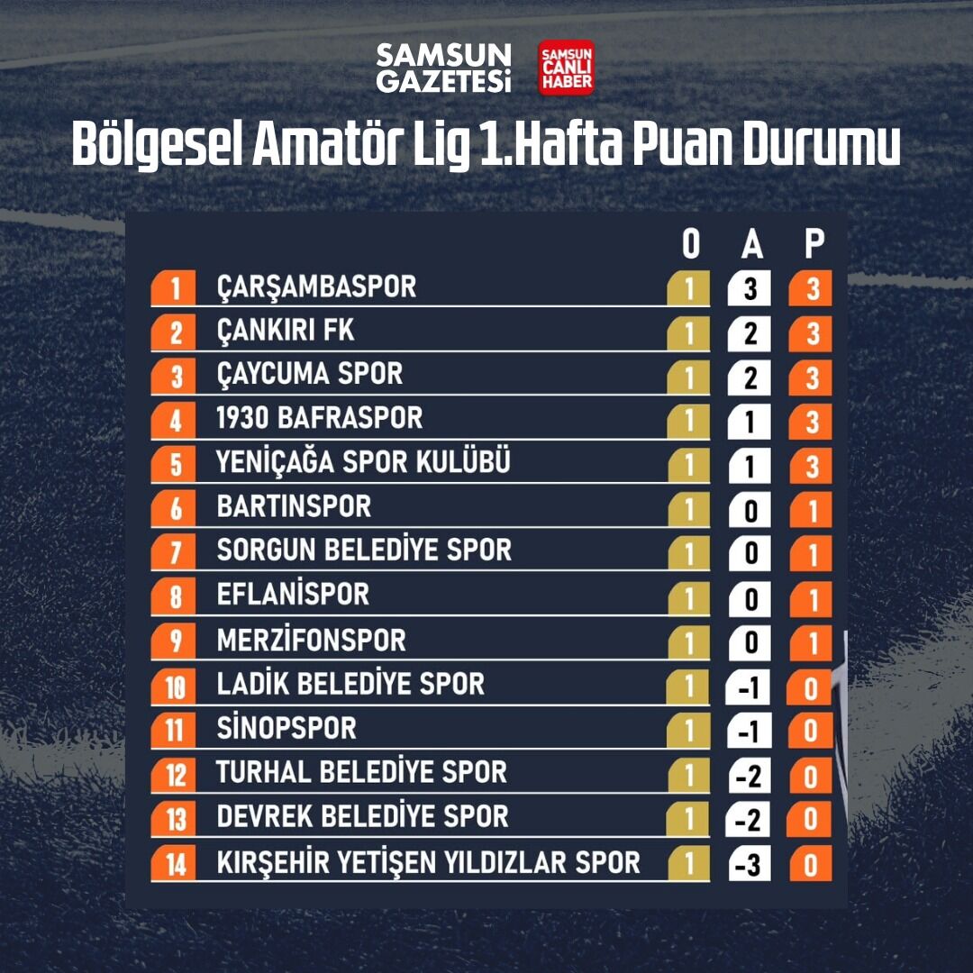 BAL 2025-2026 sezonunun ilk haftası geride kaldı. Samsun’u ligde temsil eden Çarşambaspor, 1930 Bafraspor ve Ladik Belediyespor, yeni sezonda ilk puan mücadelesine çıktı. Haftanın dikkat çeken maçında Çarşambaspor, deplasmanda Kırşehir Yetişen Yıldızlar’ı 3-0 mağlup ederek lige etkileyici bir başlangıç yaptı.