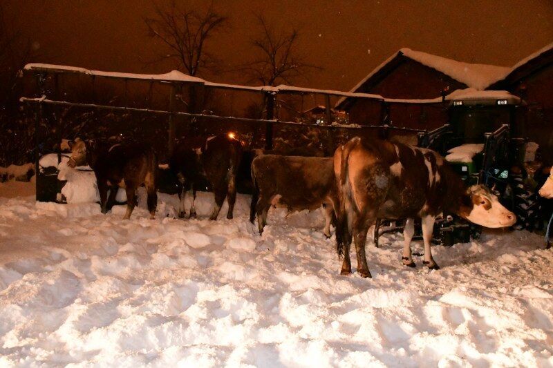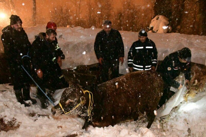 Çardak Mahallesi'nde yaşayan Hayrettin Akman'a ait ahırın çatısı, yoğun kar yağışına dayanamayarak çöktü. İçeride bulunan 40 büyükbaş hayvan, çöken çatının altında kaldı.
