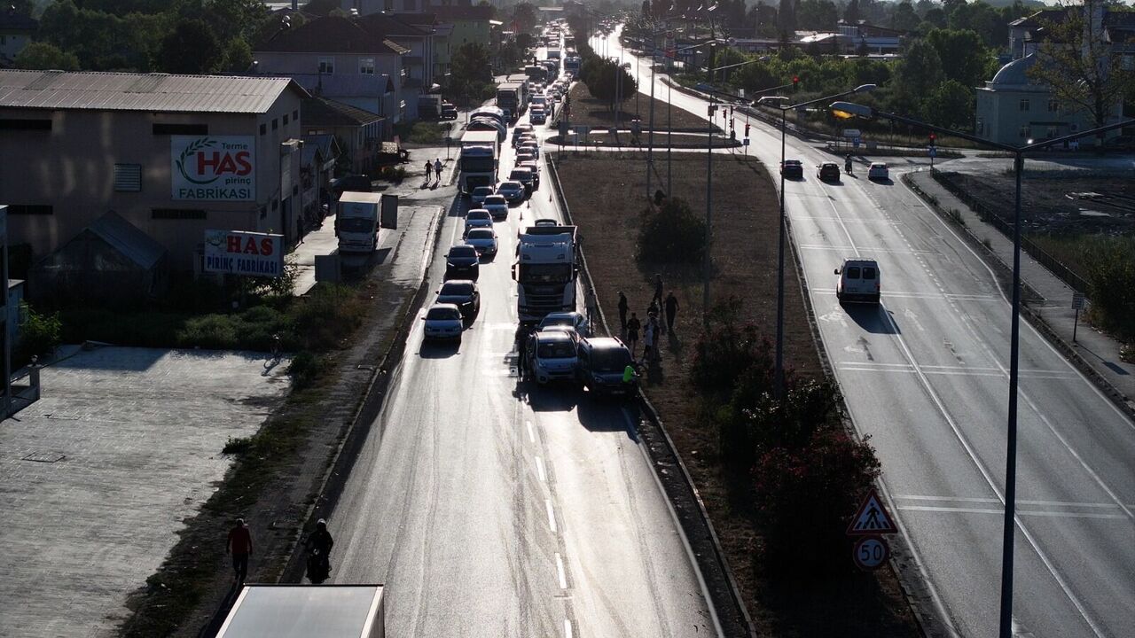 Kaza nedeniyle Ordu-Samsun kara yolunda yaklaşık 3 kilometrelik araç kuyruğu oluştu.