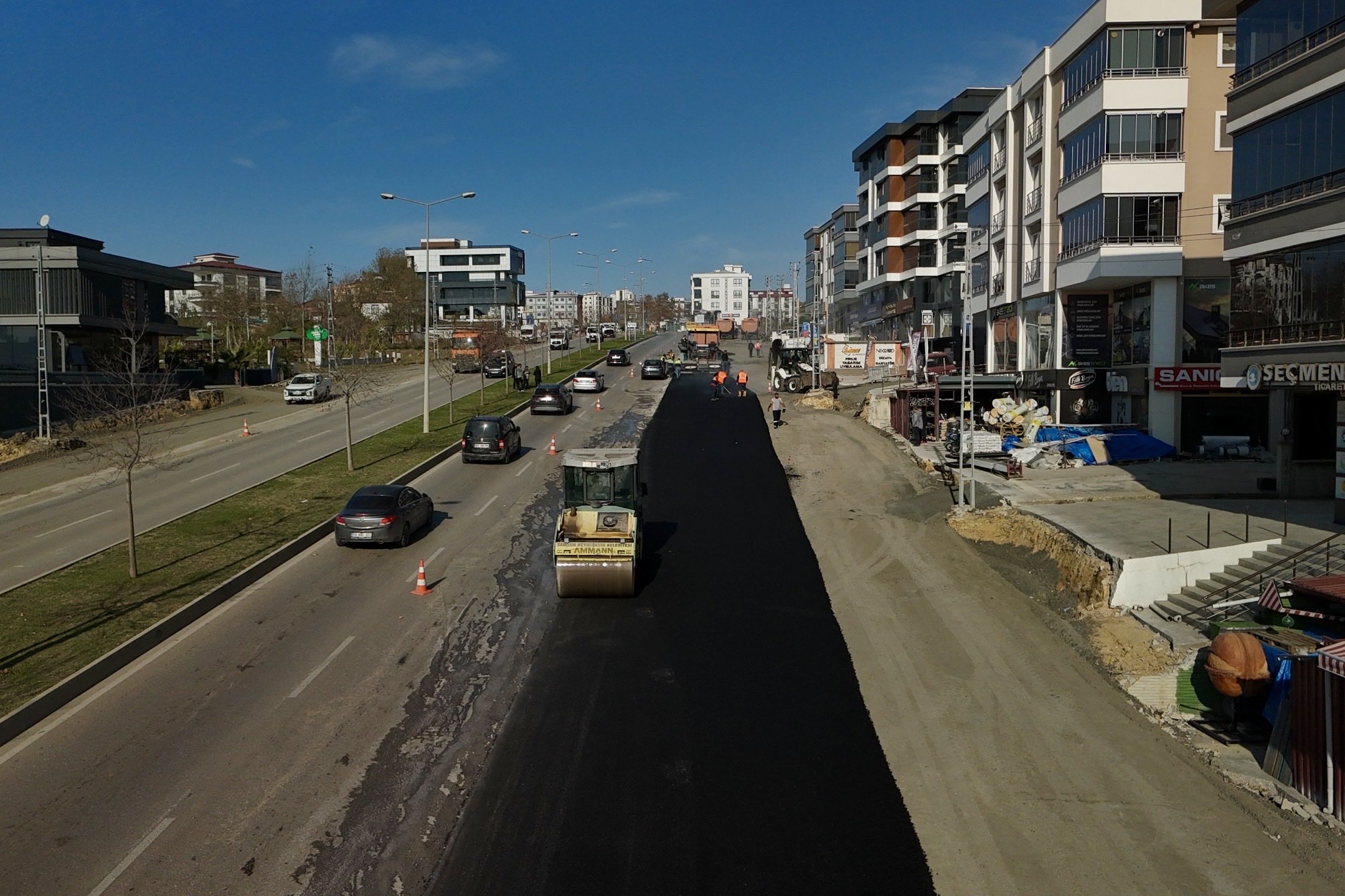 - Samsun Büyükşehir Belediyesi ekipleri genişleme tamamlanan bölümlerde geçici asfalt serimine başladı.