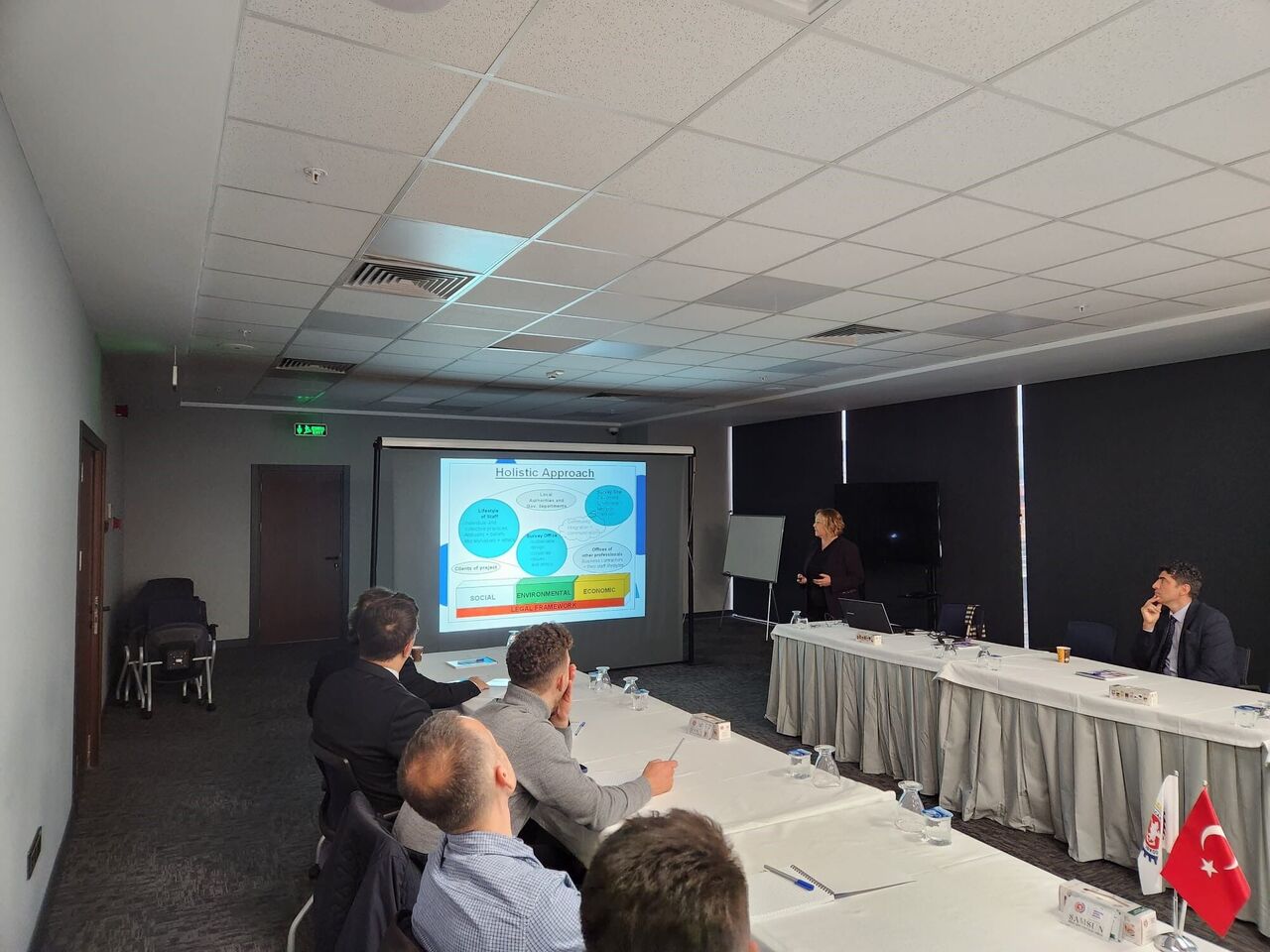 İklim değişikliğinden kaynaklanan durumlara da değinilen eğitimde, özellikle ülkemizin son yıllarda çeşitli afetlere maruz kaldığı gerçeğine vurgu yapılarak kriz öncesi ve sonrası yapılması gerekenlere ilişkin yol haritaları katılımcılara aktarıldı. Gelen soruların da yanıtlandığı eğitimde konuşmacılar; planlama ve önceliklendirme, afetler, krizler öncesinde ve esnasında hazırlıklı olma konularındaki bilgi ve tecrübelerini de katılımcılarla paylaştılar. İki gün olarak planlanan eğitimin ikinci aşaması ise 23 Ekim Pazartesi günü saat 13.00’te yapılacak ve Prof. Yüksek Ardalı, işletme temsilcilerine, ‘İş Sürekliliği Yönetim Planlarının Hazırlanması’ konusunda sunum yapacak. İkinci eğitim de ayrıca, başarılı uygulamalara sahip olan iki firmanın tecrübeleri konuklarla paylaşmaları sağlanacak.