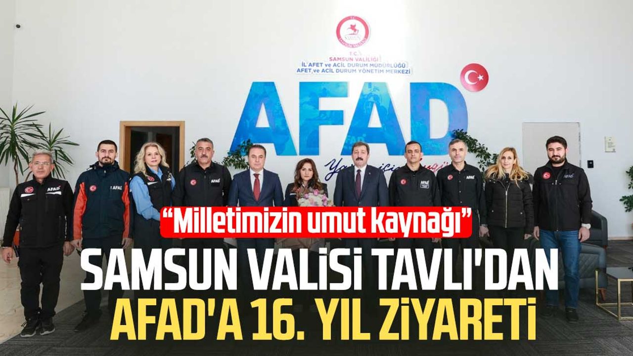Samsun Valisi Orhan Tavlı, Türkiye’de afet yönetiminin merkezi kurumu Afet ve Acil Durum Yönetimi Başkanlığı'nın (AFAD) 16. kuruluş yıldönümünü kutlayarak, tüm personel ve gönüllülere emekleri için teşekkürlerini iletti.