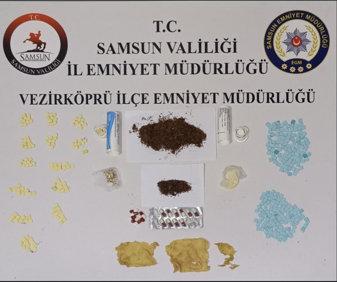 Vezirköprü İlçe Emniyet Müdürlüğü ekiplerince, ilçede belirlenen adreste yapılan aramada, 336 uyuşturucu hap, 17 sentetik ecza hapı, 24 gram sentetik uyuşturucu, 2 adet peçeteye emdirilmiş sentetik uyuşturucu ile 2,52 gram uyuşturucu hap tozu ele geçirildi.
