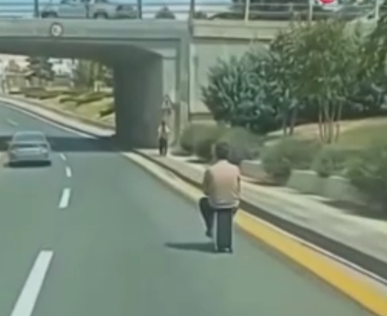 Bir vatandaş elektrikli valize binerek trafikte yolculuk yaptı. Trafiği tehlikeye atan o anlar bir vatandaşın cep telefonu kamerasına yansıdı.