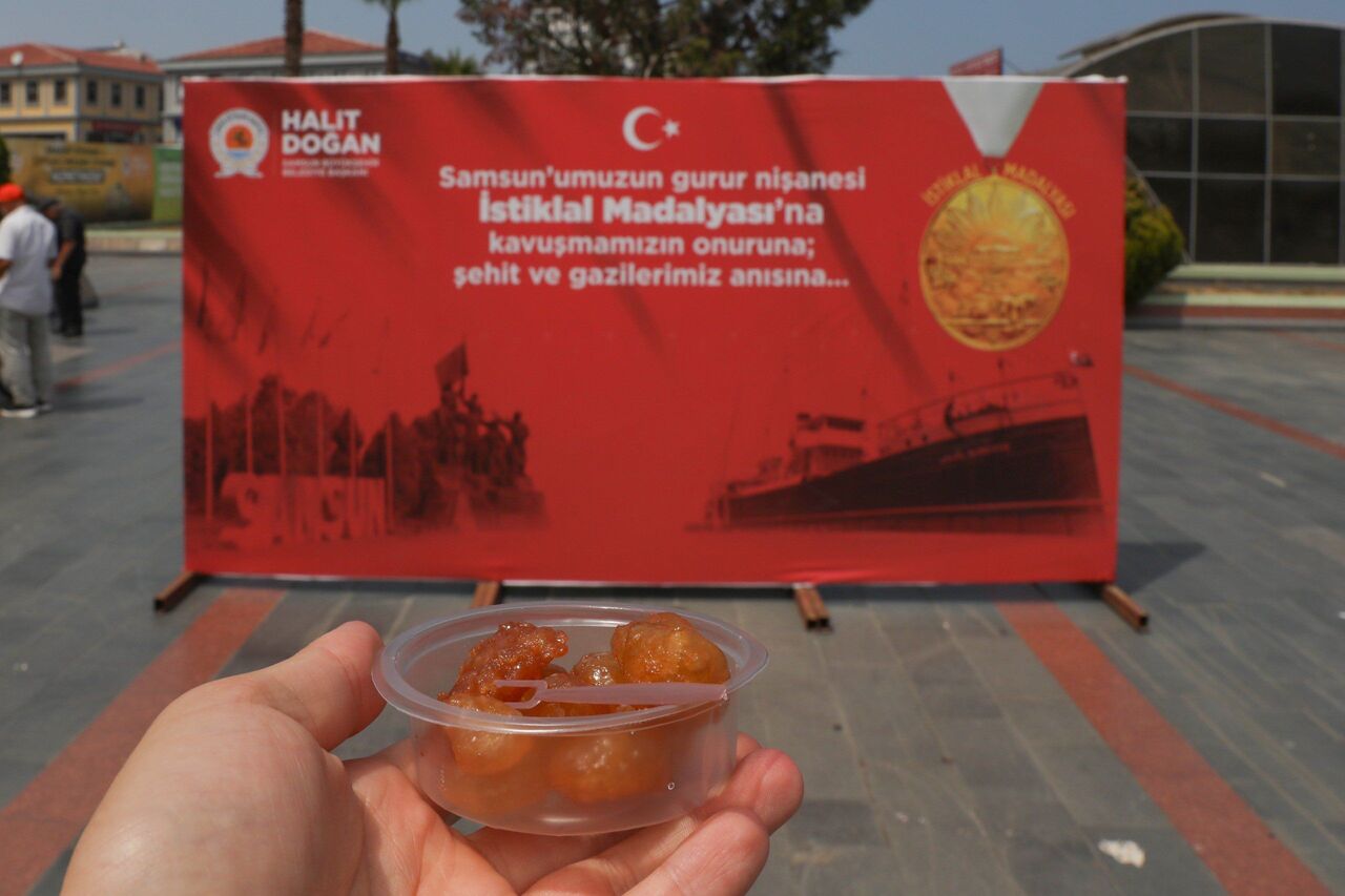 Belediye tarafından, kahraman şehit ve gazilerin aziz hatırasına ithafen düzenlenen lokma ikramı etkinliğiyle, bu anlamlı nişanın Samsun’a kazandırılması coşkuyla kutlandı.