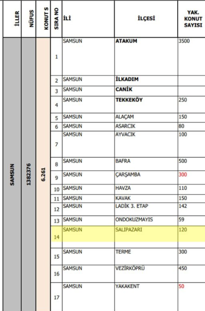 - Ne olduğu ve olayın sonucu: Atakum, Bafra, Vezirköprü ve diğer ilçelerde yeni konutlar yapılacak.