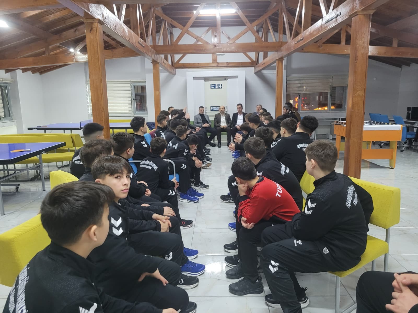 Samsun Gençlik ve Spor İl Müdürü Feyzullah Dereci, Şube Müdürleri Nevzat Akman ve İbrahim Irmak ile Sporcu Eğitim Merkezi Müdürü Vural Bölükbaş, sporcular ve antrenörlerle bir araya geldi.