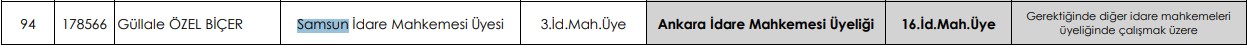 Güllale Özel Biçer Samsun İdare Mahkemesi Üyesi 3. İd. Mah. Üye Ankara İdare Mahkemesi Üyeliği (16. İd. Mah.)