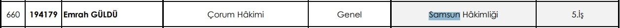 Samsun Bölge Adliye Mahkemesi Atamaları
