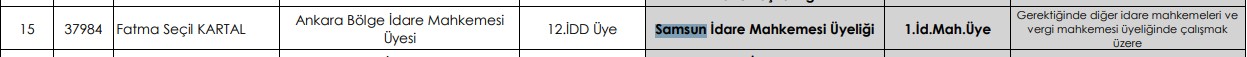 Fatma Seçil Kartal Ankara Bölge İdare Mahkemesi Üyesi 12. İDD Üye Samsun İdare Mahkemesi Üyesi (1. İdare Mah.)