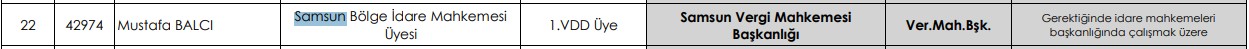 Mustafa Balcı Samsun Bölge İdare Mahkemesi Üyesi 1. VDD Üye Samsun Vergi Mahkemesi Başkanı