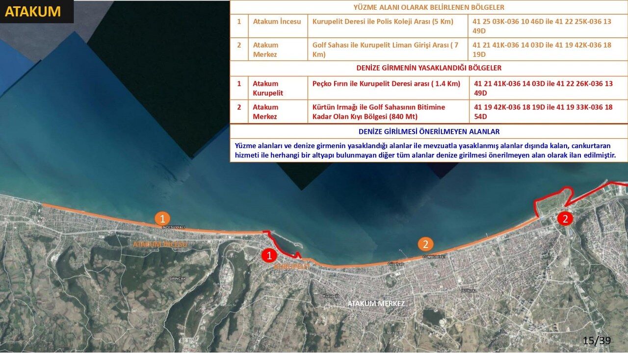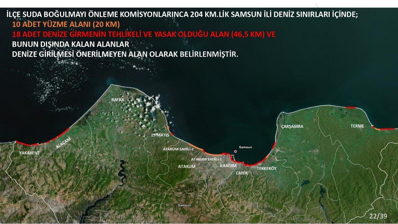Toplantıda, il genelinde toplam 20 kilometrelik 10 alan resmi yüzme alanı olarak belirlenirken, toplamda 46,5 kilometre uzunluğundaki 18 bölge ise "denize girmenin tehlikeli ve yasak olduğu alanlar" arasında ilan edildi. Bunlar dışında kalan ve altyapısı bulunmayan sahil kesimleri ise "önerilmeyen alanlar" olarak sınıflandırıldı.
