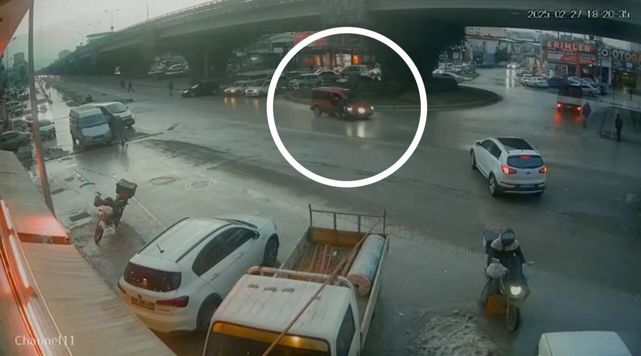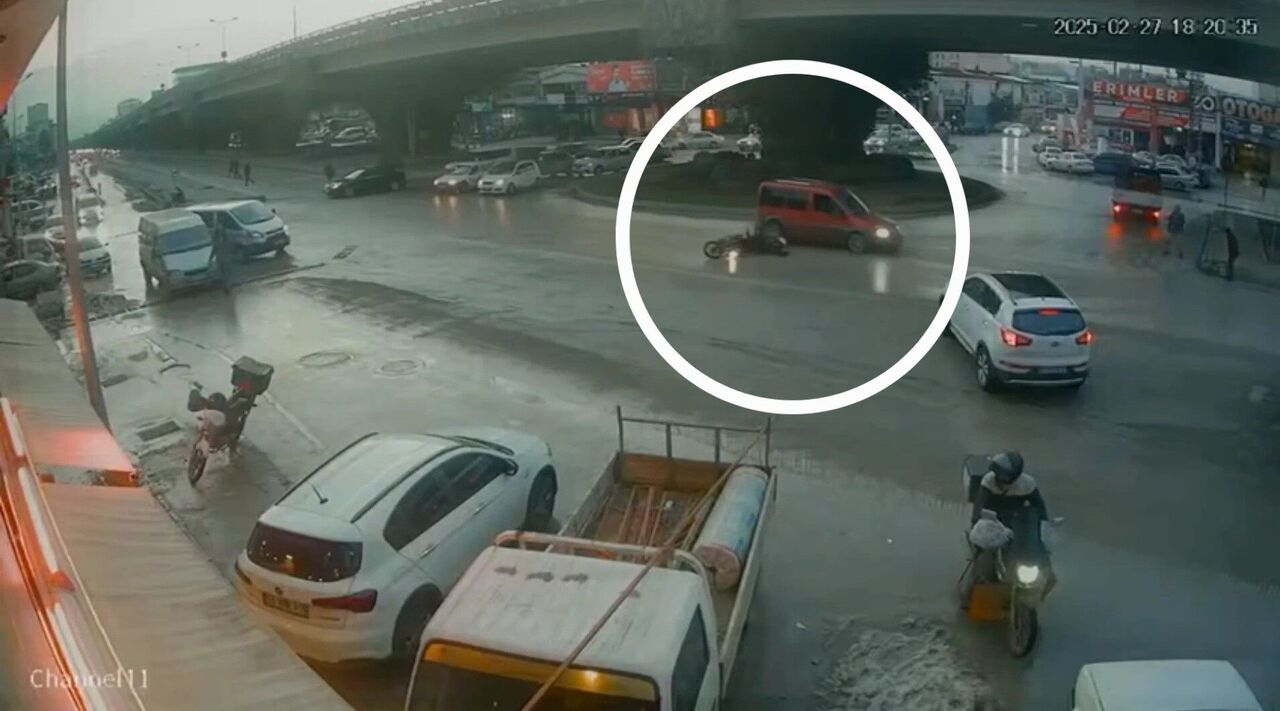 Kaza anı ise anbean güvenlik kamerasına yansıdı.