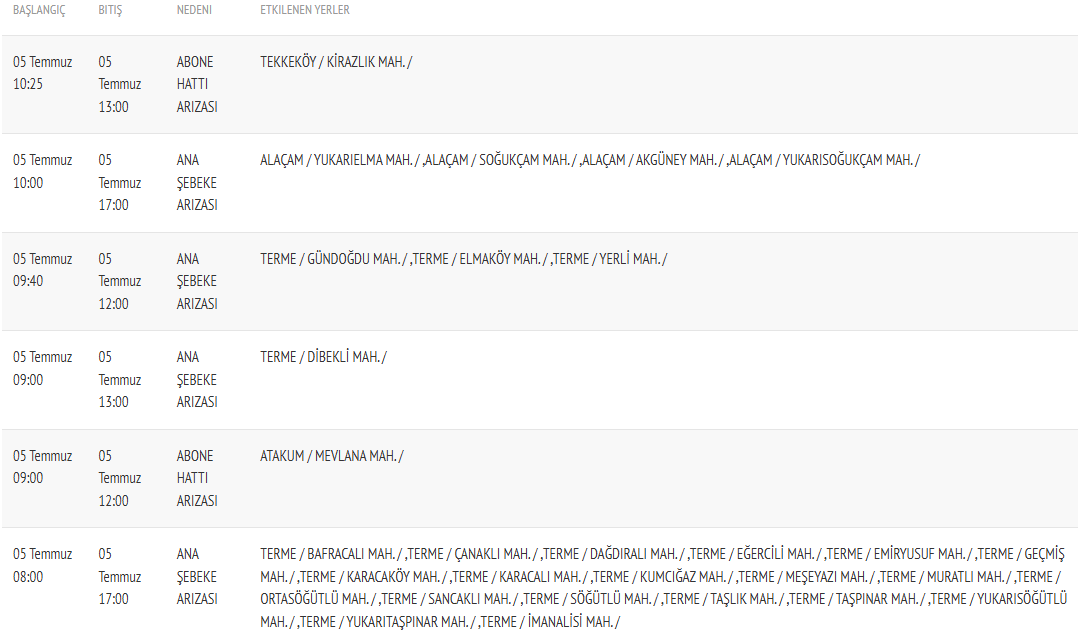 Ayrıca Terme'nin Gündoğdu, Elmaköy, Yerli ve Dibekli mahallelerinde de farklı saat aralıklarında su kesintileri yaşanacak.