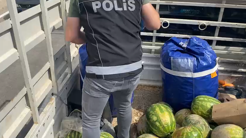 KARPUZ YÜKLÜ KAMYONETTE GİZLENMİŞ