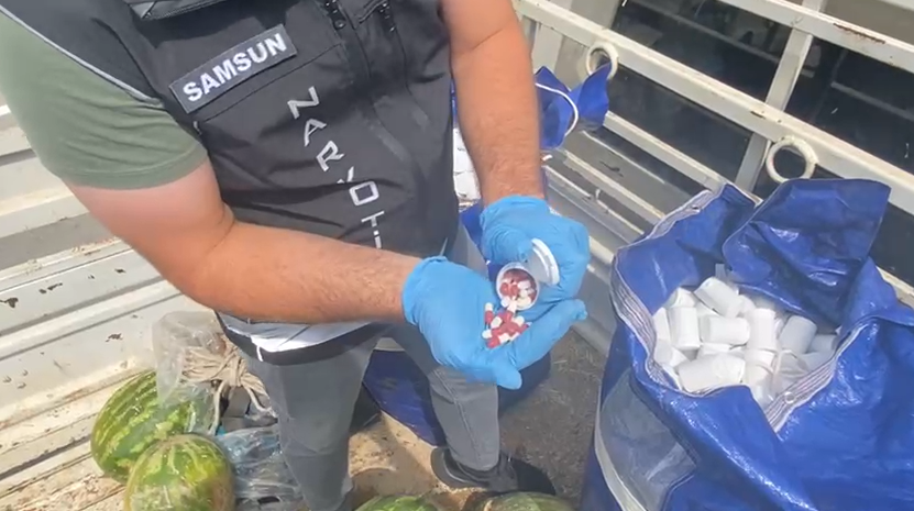 Uyuşturucu tacirleri, sevkiyatı gizlemek ve dikkat çekmemek amacıyla uyuşturucu hapları karpuz yüklü bir araç içerisine kamufle etti. Ancak polis ekiplerinin yaptığı teknik ve fiziki takip, aldığı sıkı tedbirler sayesinde araç, Ladik ilçesi Hacıali Mahallesi’nde durdurularak aramaya tabi tutuldu.