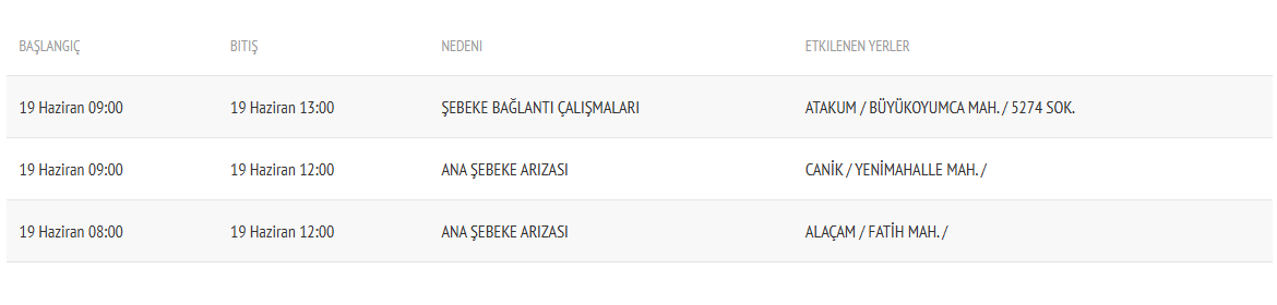 Alaçam / Fatih Mahallesi: 08.00 - 12.00 saatleri arasında ana şebeke arızası nedeniyle kesinti yaşanacak.