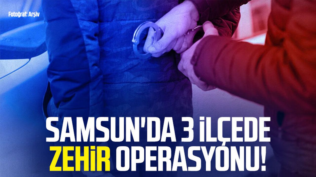 Samsun Emniyet Müdürlüğü Narkotik Suçlarla Mücadele Şube Müdürlüğü ekipleri, İlkadım, Havza ve Canik ilçelerinde uyuşturucu madde ticaretine yönelik operasyon düzenledi.