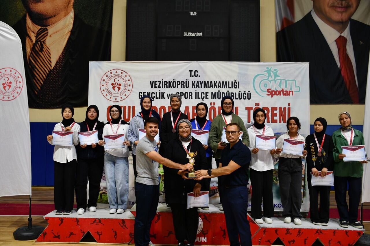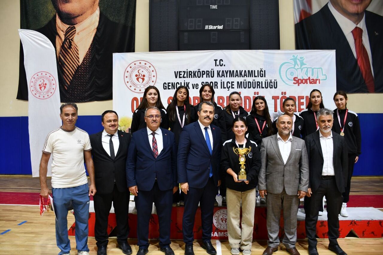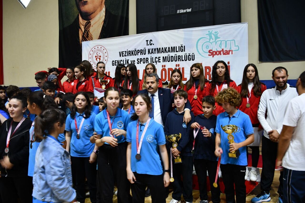 Gençlik ve Spor İlçe Müdürlüğü Spor Salonu'nda gerçekleştirilen törene, Vezirköprü Kaymakamı Özgür Kaya, Belediye Başkan Vekili Mehmet Gülburun, İlçe Emniyet Müdürü Ahmet Çelik, Gençlik ve Spor İlçe Müdürü Mehmet Uyar, İlçe Milli Eğitim Müdürü Resül Özata, İlçe Nüfus Müdürü Halis Bilen, Halk Kütüphanesi Müdürü Kani Yılmaz, okul müdürleri, öğrenciler ve veliler katıldı.