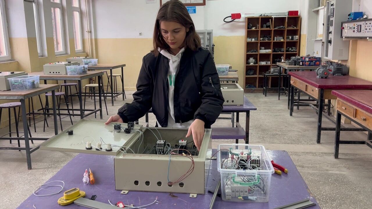 Öğrenci Ebru Kaygılı, "Staj yaptıktan sonra okulda eğitim hayatıma devam ediyorum. Böylece öğrendiğim bilgileri okulda pekiştiriyorum. Asıl hedefim elektrik-elektronik mühendisi olmak. Bu okulda okuyarak hayallerime adım adım ilerliyorum. Üniversite sınavına çalışıyorum, umarım hedefime ulaşırım. Kadınların her şeyi yapabileceğini gösteriyoruz" dedi.