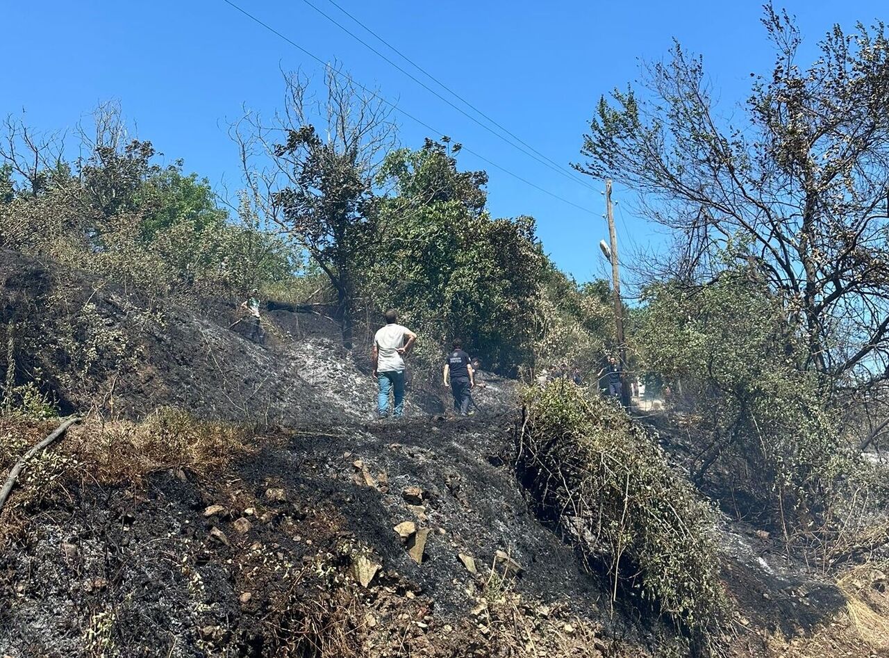 Ekipler, yaklaşık 20 dönüm arazinin etkilendiği yangının ardından soğutma çalışmalarına devam ediyor.