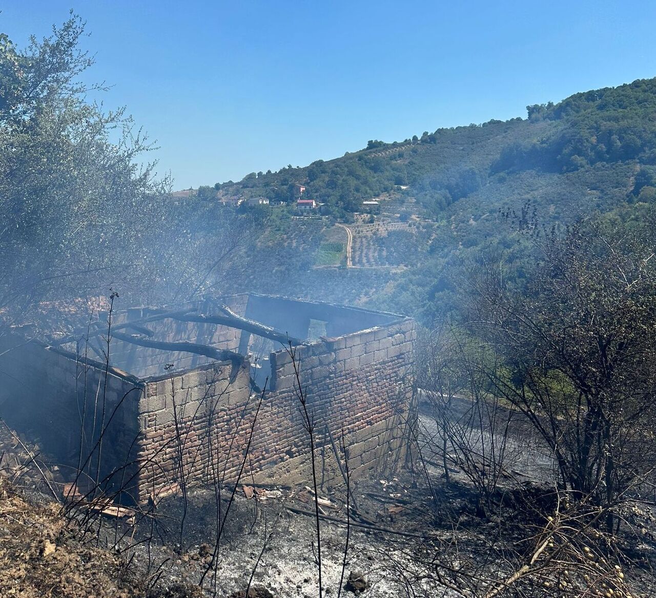 Fındık bahçesinde bulunan bir ev de yangında kullanılamaz hale geldi.
