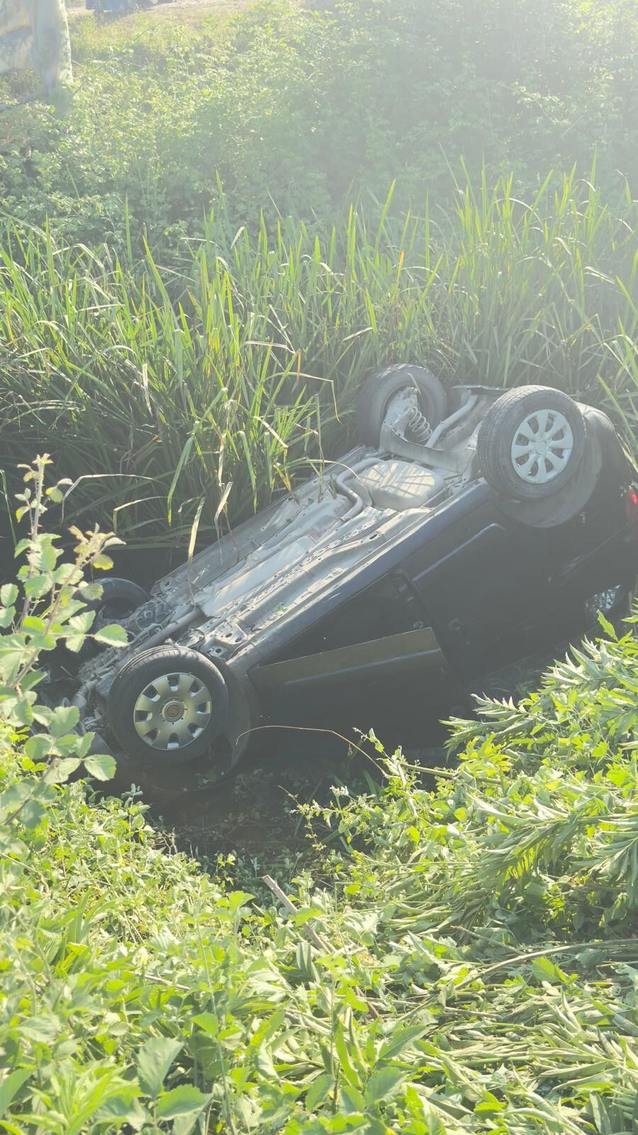 Çarpmanın etkisiyle kontrolden çıkan hafif ticari araç kanala uçarken, araç içerisinde bulunan M.Ö ve N.Ö yaralandı.