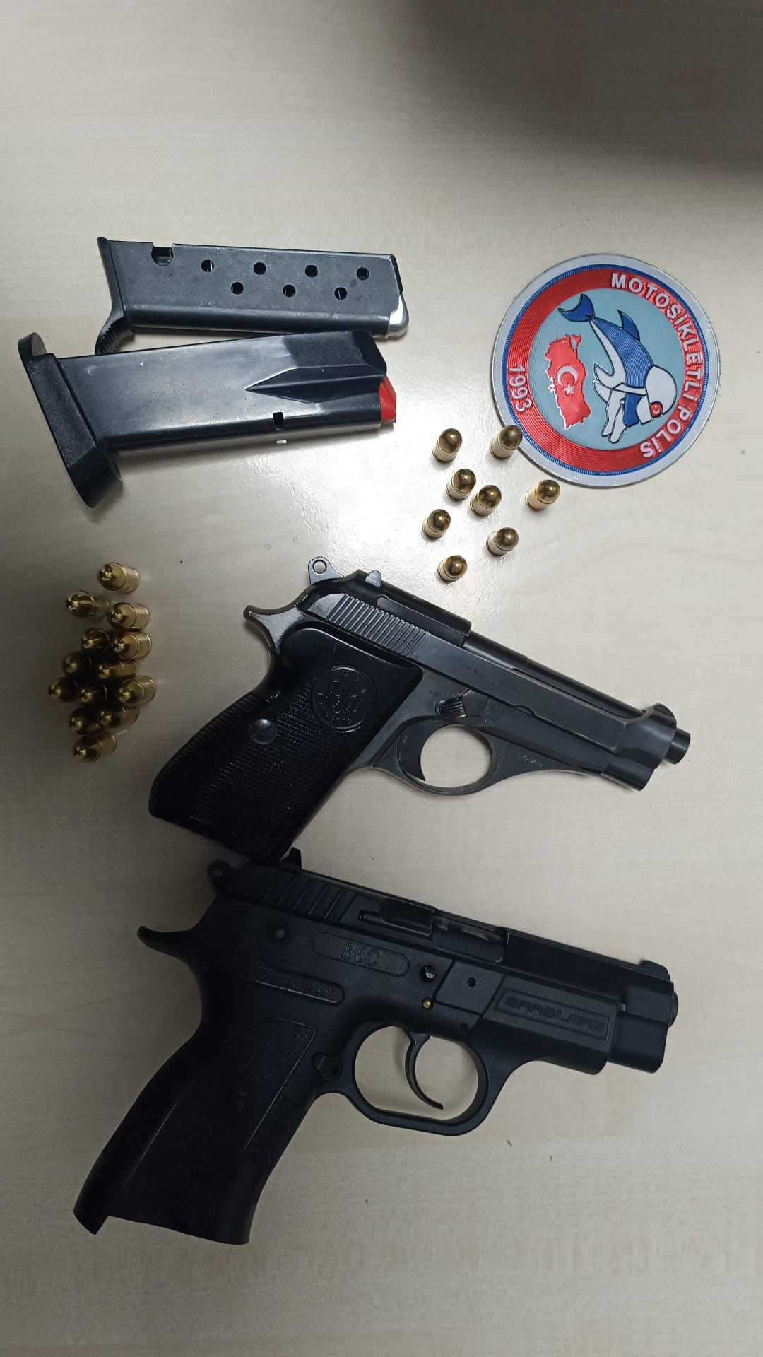 Yapılan aramalarda A.C. isimli şahsın üzerinde ve bulunduğu yerde 2 adet ruhsatsız tabanca, 2 adet şarjör ve 21 adet fişek ele geçirildi.
