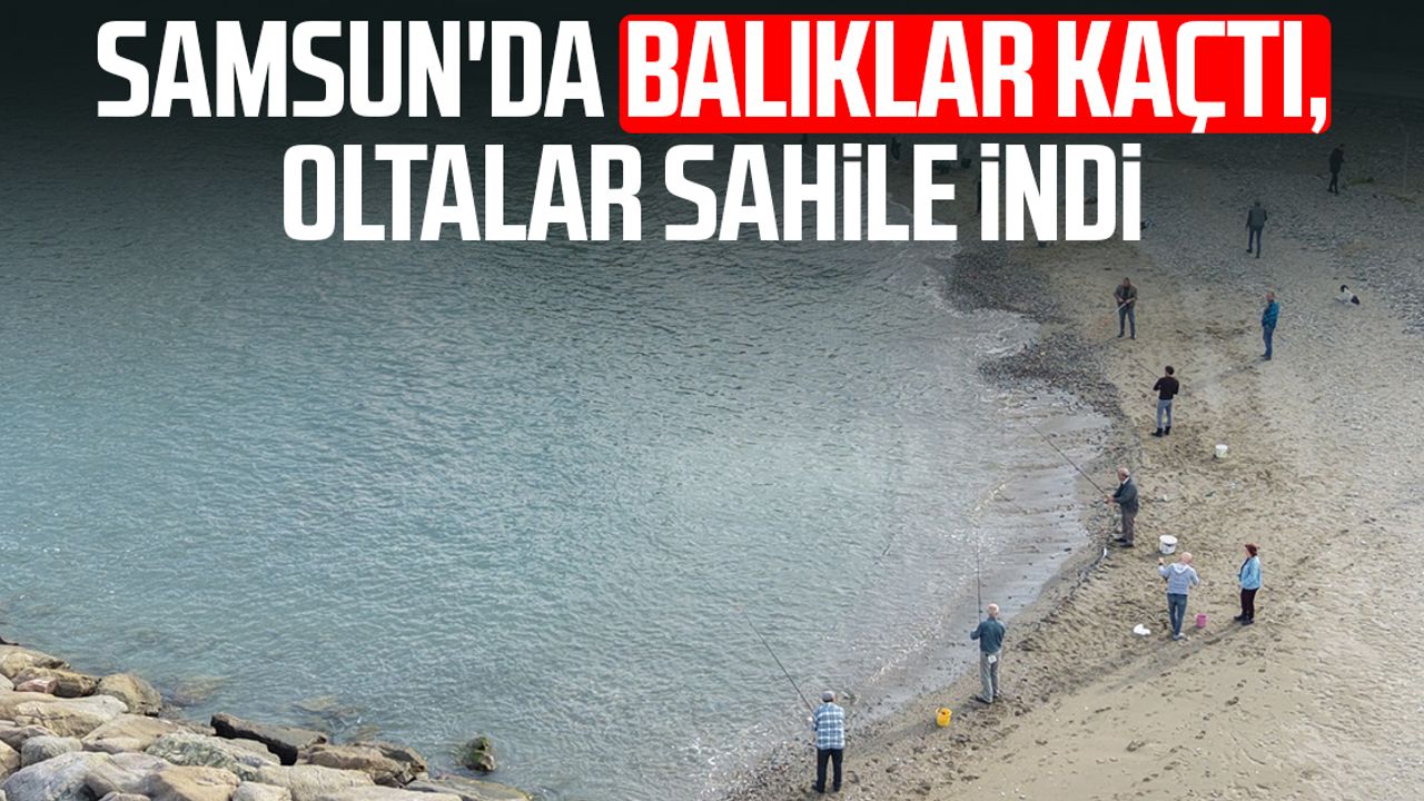 Kıyıya yaklaşan balıkları fark eden amatör balıkçılar, oltalarıyla sahile gelerek balık avlamaya başladı.