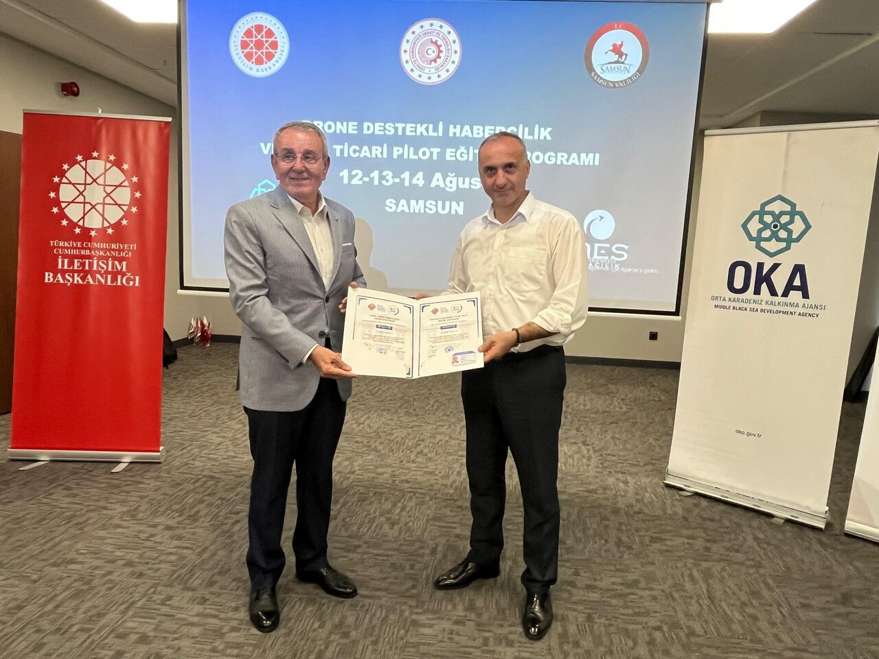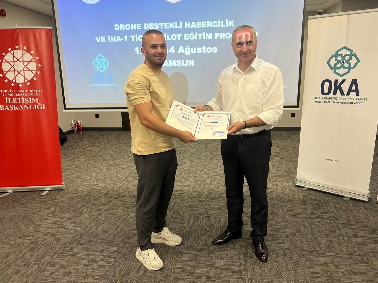 Eğitim sonunda katılımcılar "İHA-1 Ticari Dron Ehliyeti" almaya hak kazandı. Sertifikalar, Samsun TSO Yönetim Kurulu Başkanı ve OKA Yönetim Kurulu Üyesi Salih Zeki Murzioğlu tarafından takdim edildi. Murzioğlu, "Buradaki arkadaşlarımız haberleri en hızlı şekilde kamuoyuna ulaştıran isimlerdir. Çalışma şartları ağır. İletişim Başkanlığımız öncülüğünde yeni projelerde de yer almaktan memnuniyet duyarız" dedi.