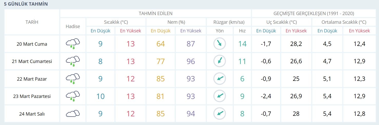 - Takip/sonraki adım: yeni haftada bulutlu ve yağışlı hava sürecek.