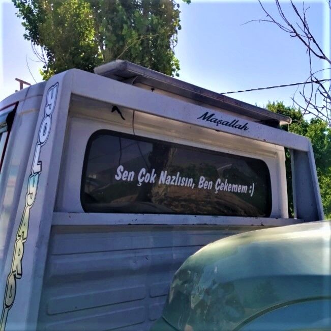 Trafikte görenlerin dikkatini çeken bu yazılar bazen okuyanların yüzünde tebessüm bırakırken bazen de hüzünlendiriyor. Özellikle çekicilik mesleğini yapan kişilerin araçlarına yazdığı yazılar ise güldürüyor. Bazı çekiciler "Asıl çekilen dertlerdi, siz sadece arabaları gördünüz", "Sen çok nazlısın, ben çekemem", "Kazanılan parayı herkes soruyor da harcanan gençlik kimsenin umurunda değil" gibi yazılar yazarken; bazı sürücüler ise araçlarının arkasına, "Biz sevmekle yükümlüyüz, kavuşmak mı Allah bilir", "Sen beni bir de 1974'te görseydin", "Hatırası olan sokaklara taksimetre açmıyoruz" gibi sözler yazdı.