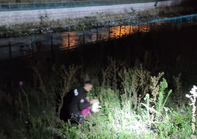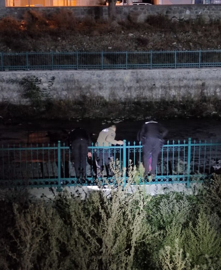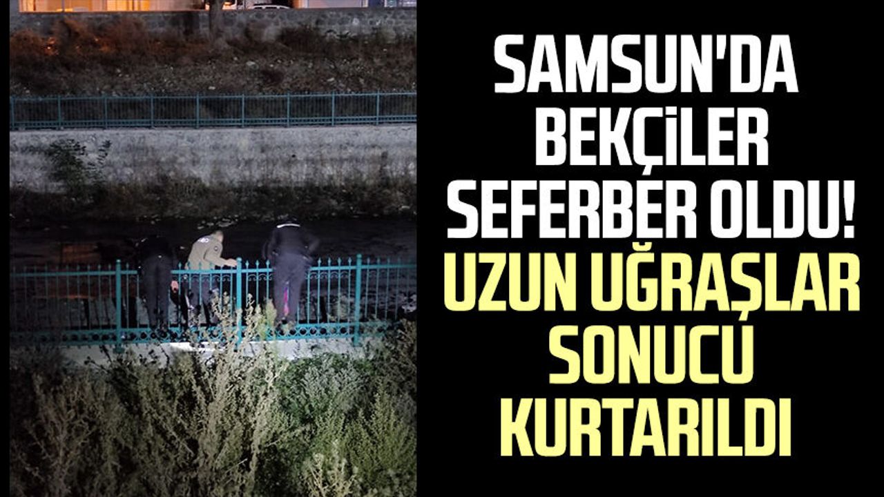 Alaçam İlçe Emniyet Müdürlüğüne bağlı mahalle bekçileri, Karşıyaka Mahallesi'nde gece devriyesi icra ederken Uluçay Deresi'nden kedi sesi duydu.