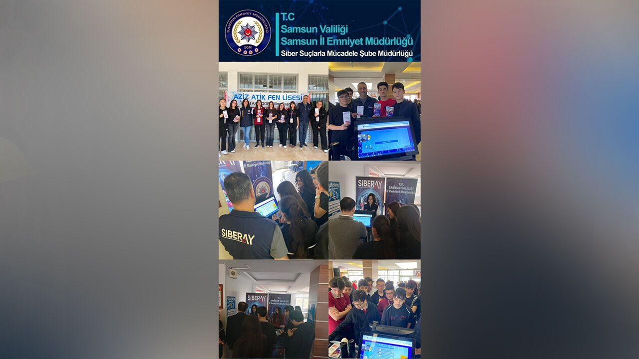 Samsun İl Emniyet Müdürlüğü Siber Suçlarla Mücadele Şube Müdürlüğü ekiplerince yürütülen SİBERAY Programı kapsamında, 28 Nisan 2026 tarihinde Aziz Atik Fen Lisesi’nde gerçekleştirilen TÜBİTAK 4006 Bilim Şenliği’nde farkındalık etkinliği düzenlendi.