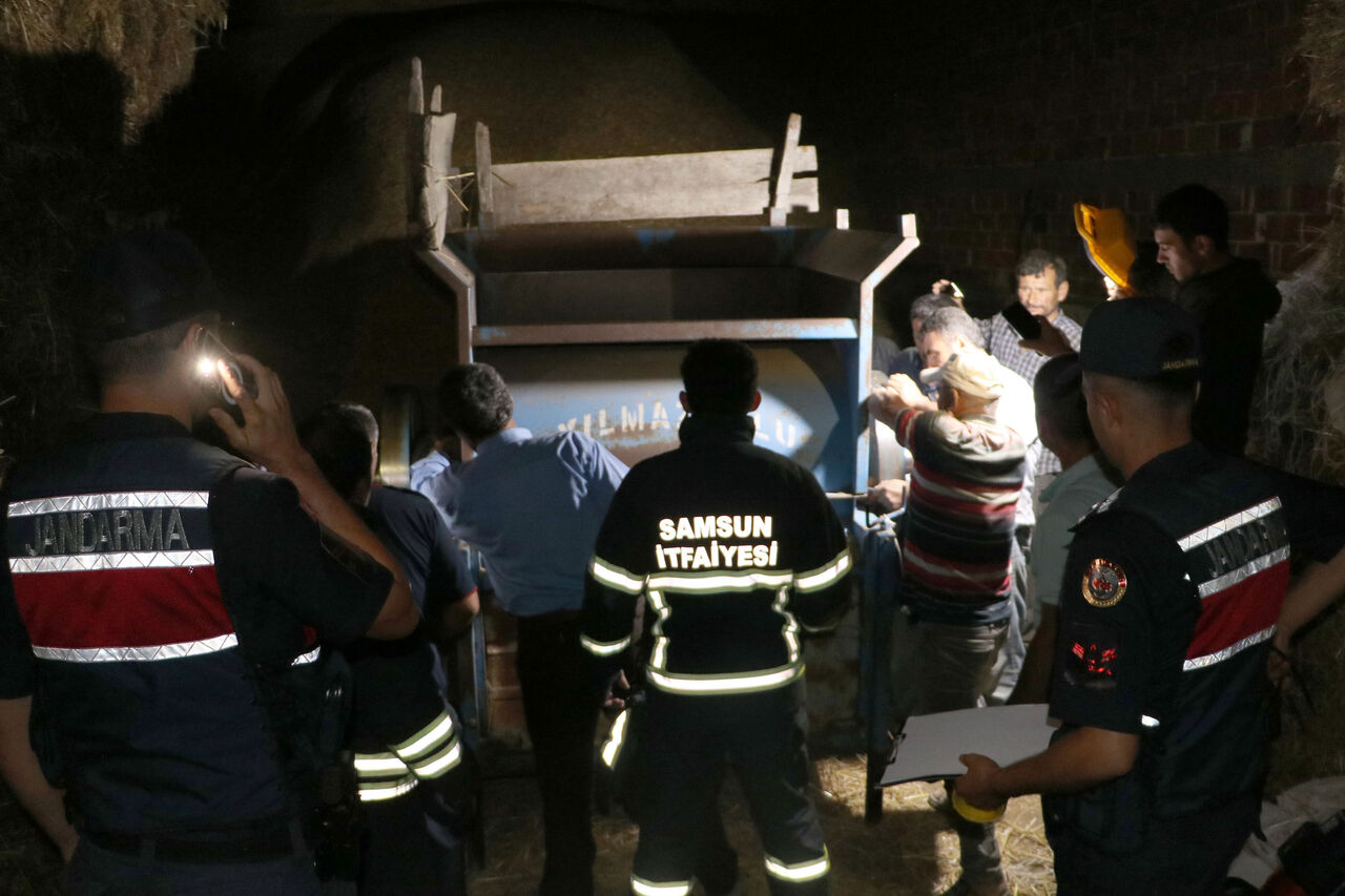 Samsun'un Havza ilçesi Çelikalan Mahallesi'nde, babasının evininin önündeki samanlıkta yer alan buğday saplarını patoza atarken dengesini kaybeden Züleyha Gün (42), söz konusu makinenin içine düştü.