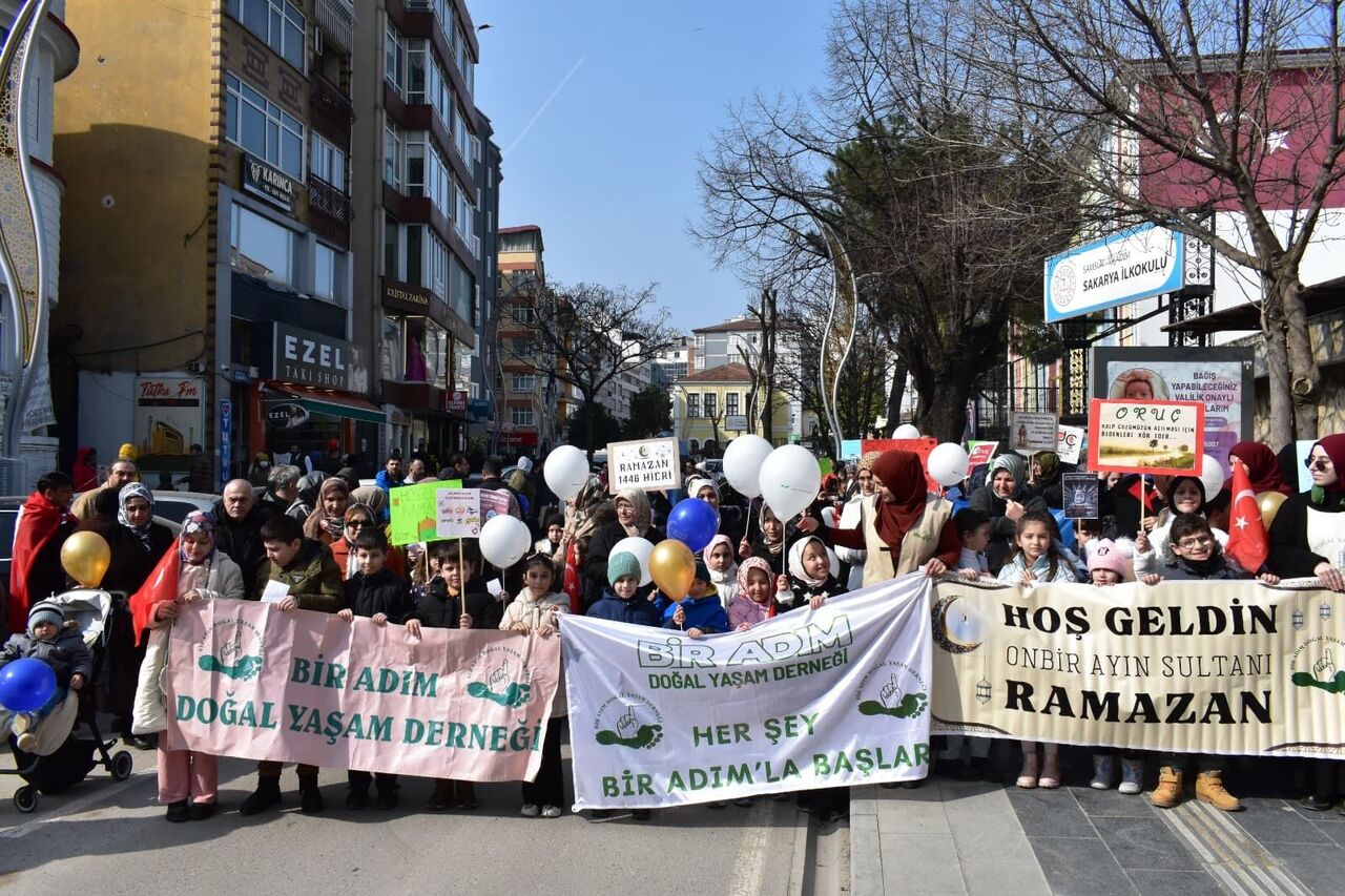 Ramazan davulu ve ezgiler eşliğinde Çiftlik Caddesi boyunca yürüyen grup, ramazan manileri söyledi. Ellerinde Türk bayrağı ve dövizler de taşıyan grubun yürüyüşü Site Camisi'nde son buldu. Cami bahçesinde çocuklarla geleneksel oyunlar oynandı, hediyeler dağıtıldı.