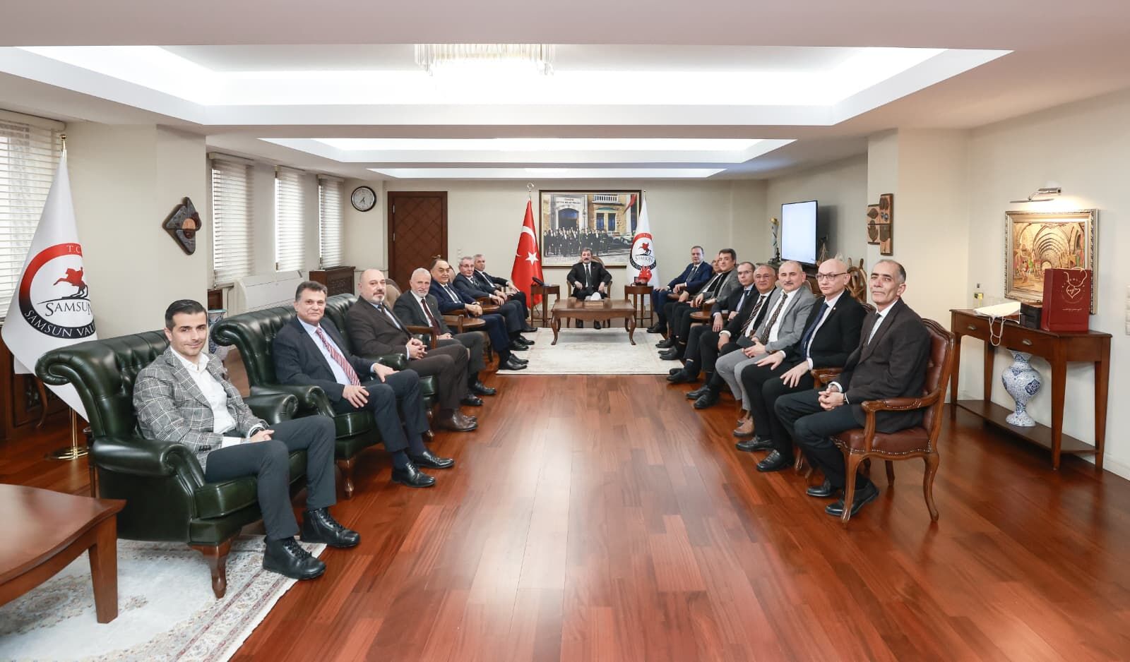Program kapsamında Başkan Tamer Kıran ve beraberindeki heyet, Samsun Valisi Orhan Tavlı’yı makamında ziyaret etti. Görüşmede özellikle İran’da yaşanan savaşın ve bölgesel gelişmelerin deniz ticareti üzerindeki olası etkileri hakkında görüş alışverişinde bulunuldu.