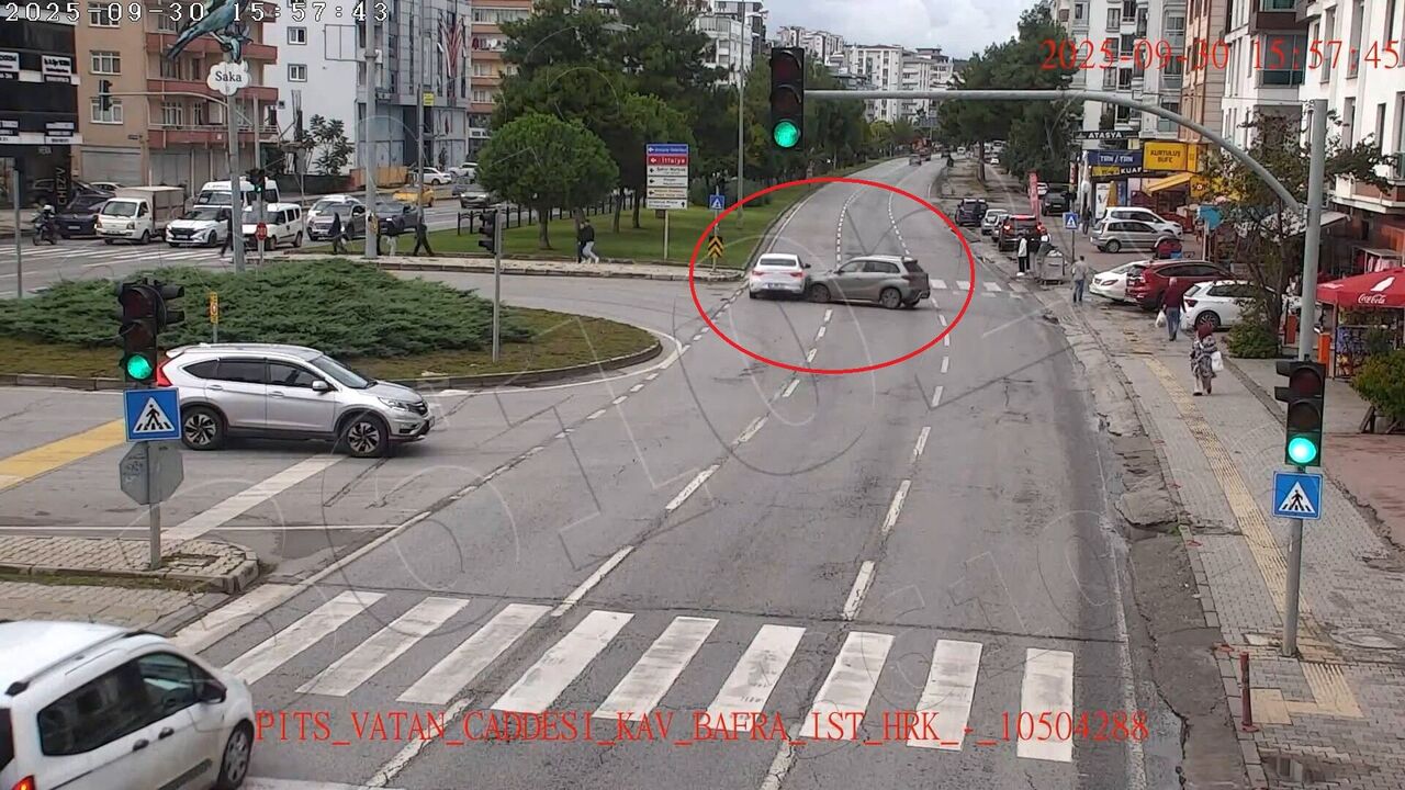 Atakum ilçesi Atatürk Bulvarı'nda meydana gelen kazada ise, ana yol üzerinde kontrolsüz şekilde dönüş yapan bir otomobil ile yeşil ışıkta ilerleyen başka bir otomobil çarpıştı.